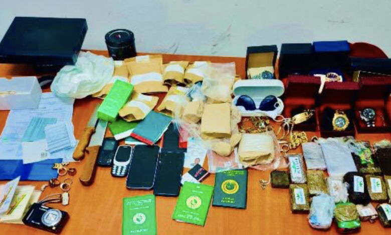 وقد مكنت إجراءات البحث والتفتيش المنجزة في إطار هذه القضية من العثور بحوزة المشتبه فيه على 830 غرام من مخدر “البوفا”، وكيلوغرام و750 غرام من مخدر الشيرا، وأكياس من مادة البيكاربونات، وسكينين، ومجموعة من الساعات اليدوية والمنقولات المشكوك فيها، والتي يجري تحديد مصدرها.
