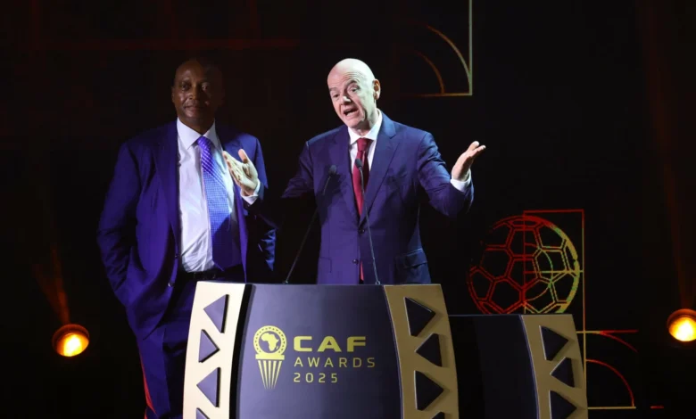 وأكد رئيس (الفيفا) في تصريح صحفي بمناسبة حفل توزيع جوائز الكونفدرالية الإفريقية لكرة القدم برسم سنة 2025 ، إن أفضل اللاعبين والأندية في إفريقيا هم أيضا أفضل اللاعبين والأندية في العالم ككل.